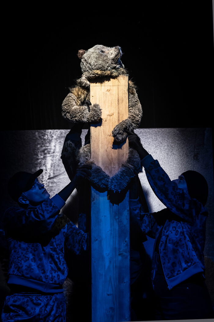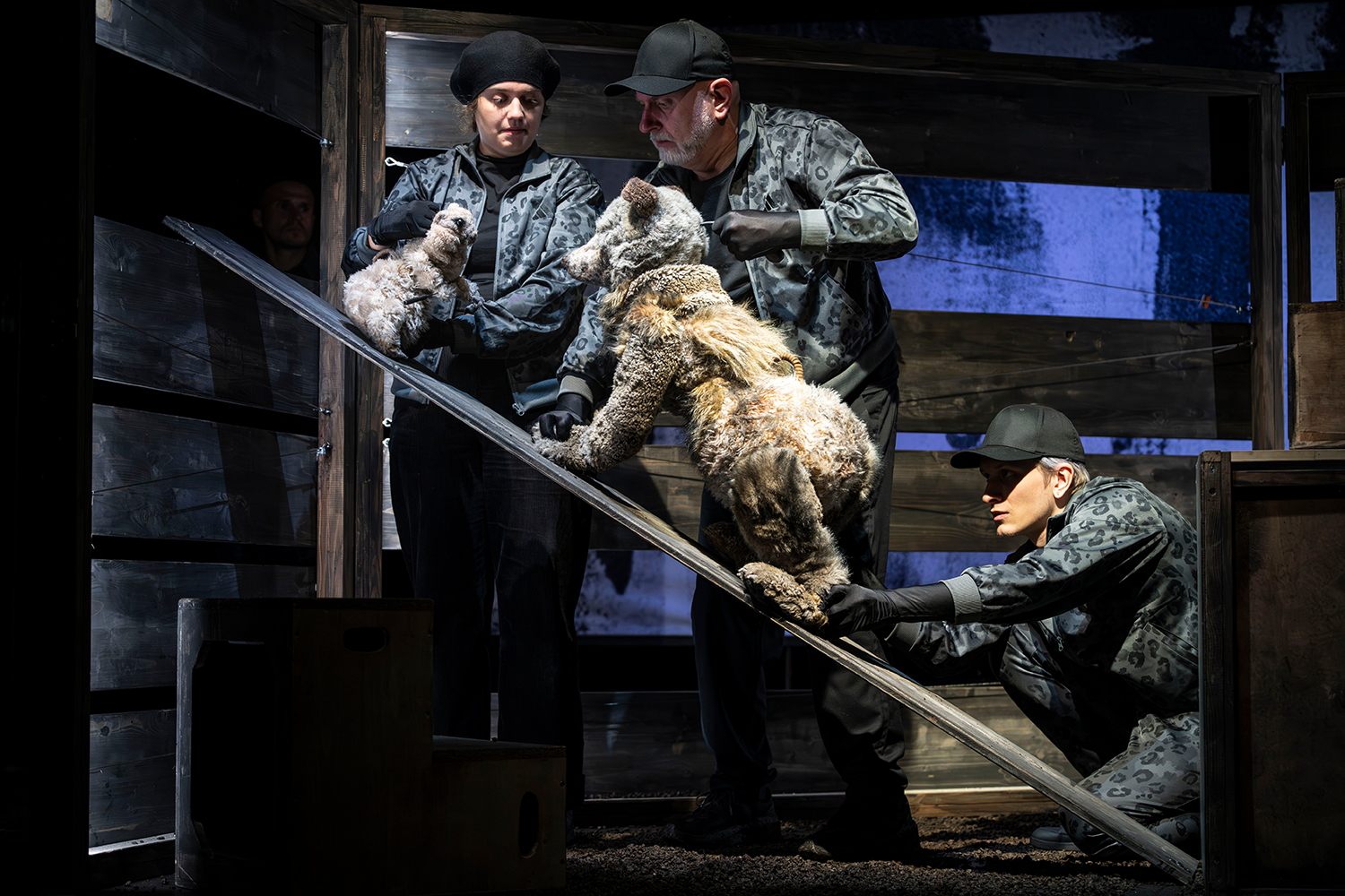 Jens Raschkes prämiertes und hoch aktuelles Stück erzählt von den Ereignissen im Konzentrationslager Buchenwald aus der überraschenden Perspektive seiner Zootiere. Die Inszenierung von Matthias Thieme arbeitet mit der Gegenüberstellung von Abstraktion in Bühnenbild und Sounddesign und der Konkretheit einer fantastisch gestalteten Puppenwelt.