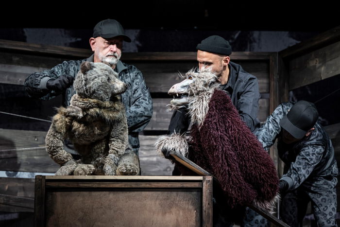 Jens Raschkes prämiertes und hoch aktuelles Stück erzählt von den Ereignissen im Konzentrationslager Buchenwald aus der überraschenden Perspektive seiner Zootiere. Die Inszenierung von Matthias Thieme arbeitet mit der Gegenüberstellung von Abstraktion in Bühnenbild und Sounddesign und der Konkretheit einer fantastisch gestalteten Puppenwelt.